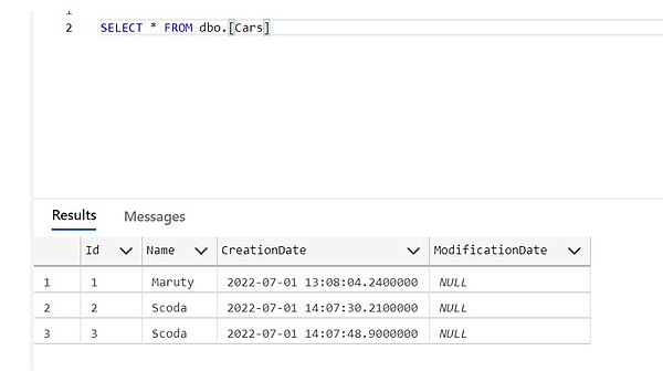 The above figure shows the “Cars” topic message in Kafka. After the sink connector creation, the destination table result it will be like this
