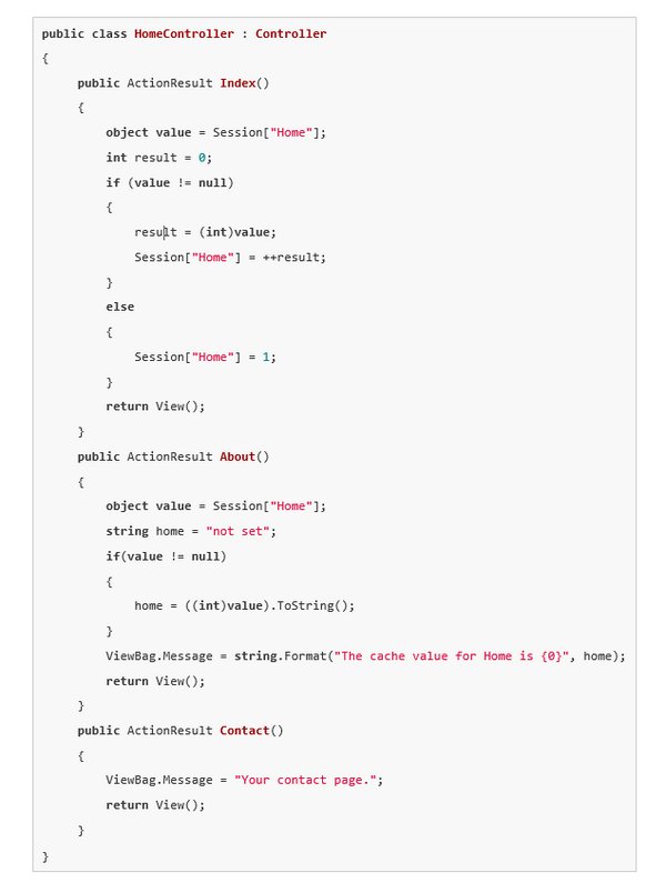 Now you can start defining what you want to store in the output cache. You can do this in the controller or in a view. You can simply specify a controller action result to store in the output cache by adding the OutputCache attribute to the action method.