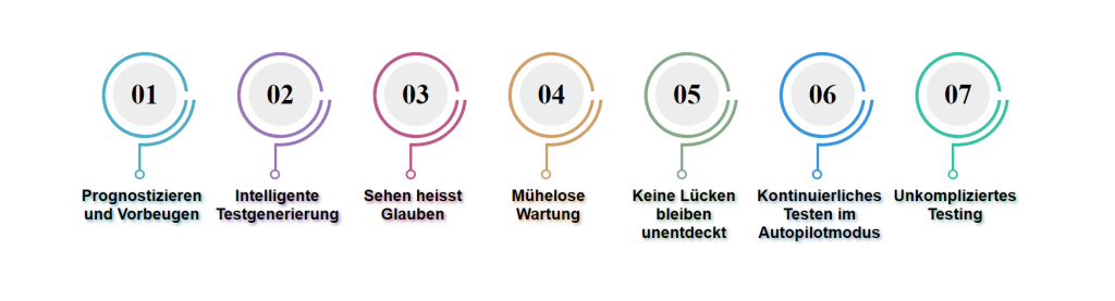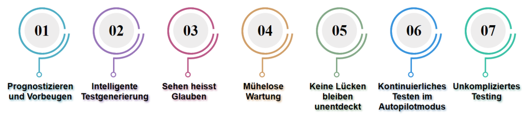 · Das kontinuierliche Lernen und die Anpassungsfähigkeit von KI verbessern im Laufe der Zeit die Qualität der Testautomatisierung erheblich. Dadurch entsteht ein robusterer Testprozess, der Defekte bereits in frühen Entwicklungsstadien identifiziert.