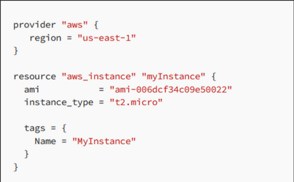 - This tells Terraform to use the AWS provider to manage resources.