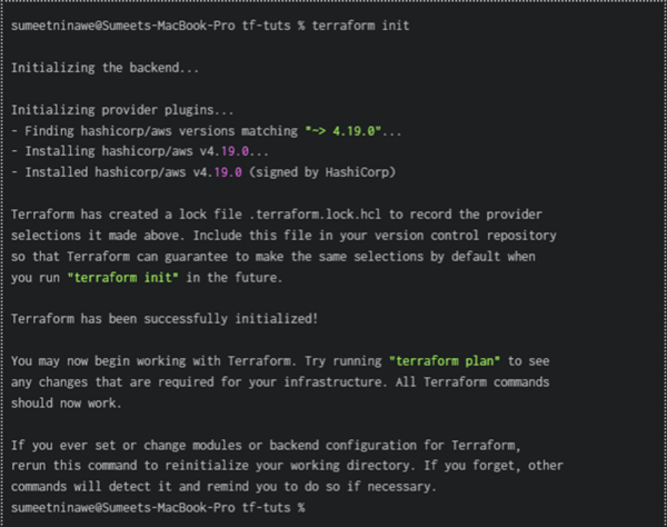 Before actually creating the infrastructure, we first need to initialize the working directory. This can be done using the terraform init command. On running this command, it downloads all the required plugins necessary for building your infrastructure