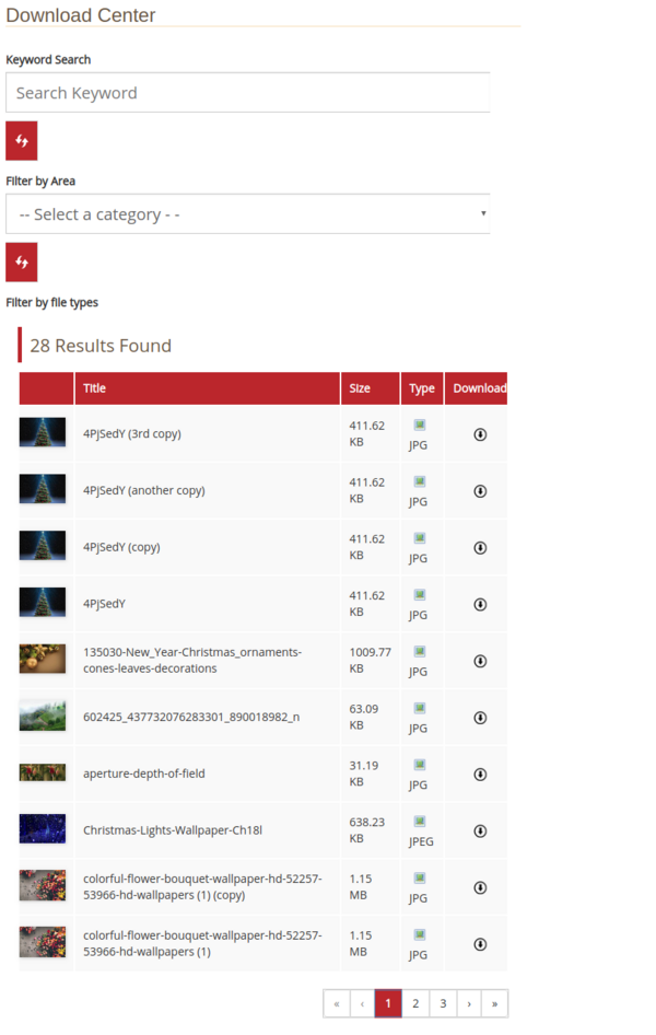 PITS Download Center extension is a great tool that will allow you to search and filter media assets from large number of files based on categories and file types managed within typo3 backend. At the same time this extension is very useful for downloading files from website.