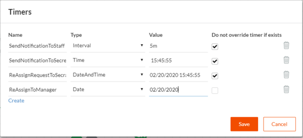 Tasks can be executed based on timers. Both time intervals as well as time-specific timers can be set to execute workflow activities. Also timer values can be set in different ways like interval, date, time, date and time. Even if the timer value is specified in intervals, the workflow will forecast the exact time. For instance, even if the server goes down for a moment after defining the interval it will not affect the timer functionality.