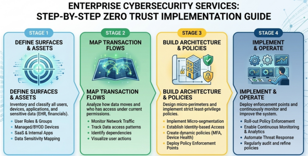 Rather than attempting a complete transformation at once, enterprises should adopt Zero Trust incrementally, starting with high-risk areas and expanding over time.