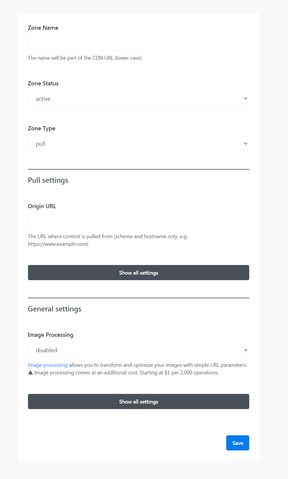 Klicken Sie dann im linken Menü auf Zonen. Fügen Sie dann eine Zone für Ihre Website hinzu, um eine CDN-URL zu generieren.