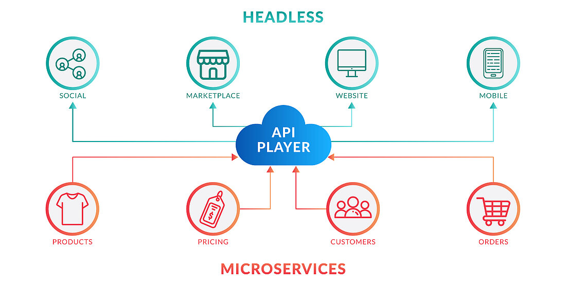 Headlessness zerlegt monolithische Strukturen, indem Frontend- und Backend-Funktionalitäten getrennt werden, sodass sie unabhängig voneinander arbeiten können. Dies steigert die Flexibilität und Agilität erheblich. Jedoch allein durch Headlessness werden die Vorteile des modernen Handels noch nicht vollständig erschlossen.