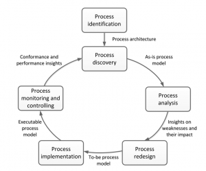 Business Process Management (BPM) is the art and science of monitoring how work is performed in an organization to ensure consistent outcomes and to take advantage of improvement opportunities. BPM is the process of managing entire chains of events, activities and decisions that ultimately add value to the organization and its customers. These “chains of events, activities and decisions” are called processes.