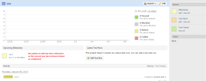Following is the sample view for the ‘Overview’ page displaying a project name with the announcement text (added while creating the project) :