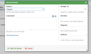 3. Add all the required fields and click the ‘Add Test Result’ button (after making the status: Passed/Failed/Blocked/Retested-depending upon the conditions)